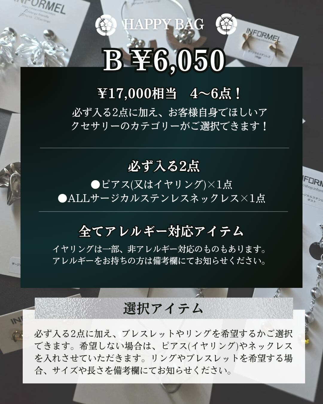 さらに、リング、ブレスレットを福袋に入れるかご選択頂けます。
